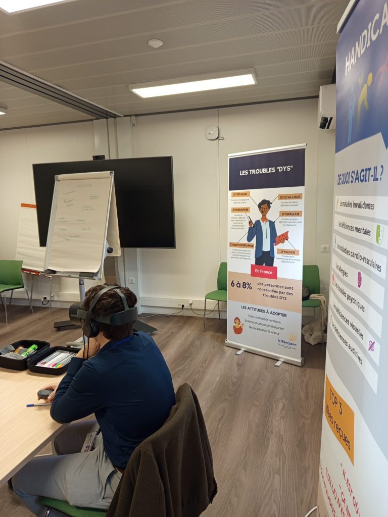 En 15 minutes, les participants vivent les effets d’un trouble psychique, d’un trouble DYS, d’un handicap auditif ou d’une maladie invalidante/douleurs chroniques.